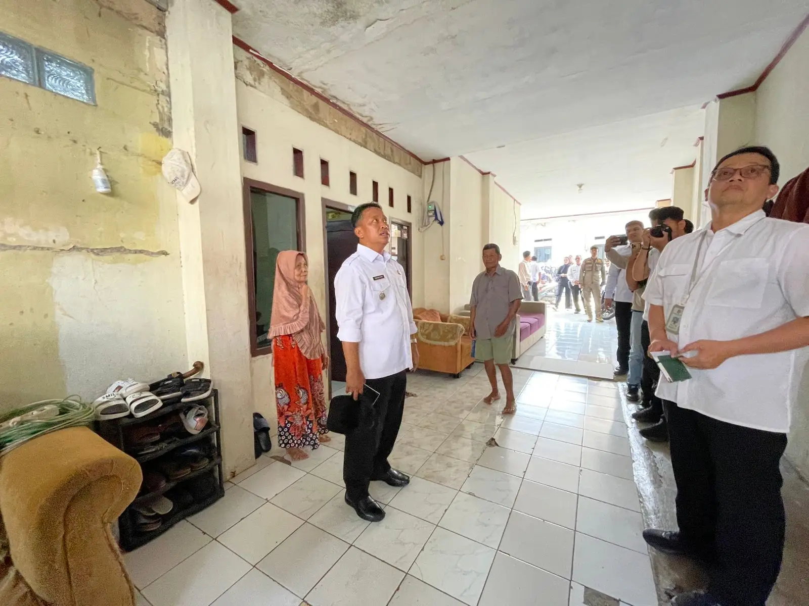 Wali Kota Depok, Supian Suri meninjau langsung rumah warga yang rusak akibat angin puting beliung di Kelurahan Grogol, Kecamatan Limo, Rabu (08/10/25).